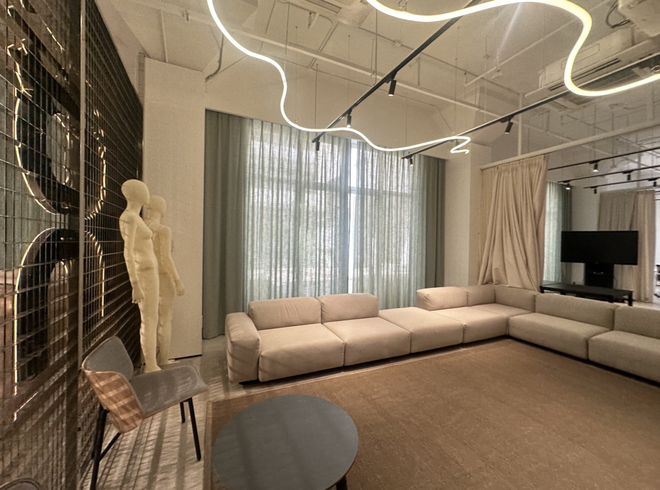 3月底,我走进了On昂跑(下称“昂跑”)位于上海市黄浦区的亚太区总部。踏入这里,我的第一印象是,像是走进了一个私密健身房:和其他运动品牌通常的暖性活力色调不同,昂跑办公空间和它的跑鞋风格很像,主色调金属灰,搭配蓝橙,设计极简,工业风,墙面是抽象热力地图,地板和走廊模拟户外跑步体验,淋浴间鼓励集体跑步,一楼是蛇形灯带,模仿上海三条著名的跑步路线。