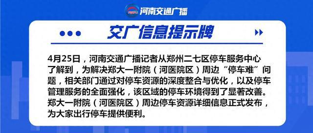 4月25日,河南交通广播记者从郑州二七区停车服务中心了解到,为解决郑大一附院(河医院区)周边“停车难”问题,相关部门通过对停车资源的深度整合与优化,以及停车管理服务的全面强化,该区域的停车环境得到了显著改善。