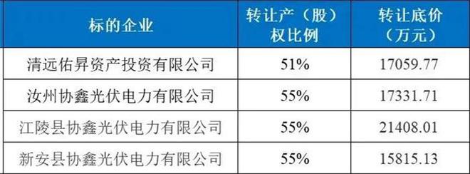 4月11日,北京产权交易所网站显示,国家电投旗下五凌电力有限公司转让四家新能源公司股权,如下表所示。