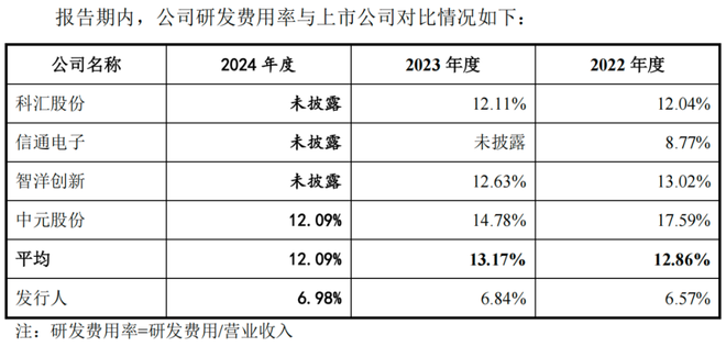 但山大电力报告期的研发费用却分别为3142.95万元、3757.96万元和4596.27万元,占各期收入的比重均未超过7%,这一比例远低于同行业可比公司平均12%-13%的水平。
