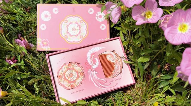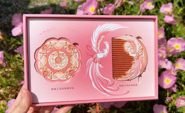 此次推出的限量新品中,“一镜一梳”系列尤为抢手。玉龙纹随身镜以殷墟出土文物为灵感,镜面采用异形设计,搭配紫薇花纹饰,镜背镌刻甲骨文“安”字,寓意“平安相伴”;玄鸟梳则以商族图腾为元素,梳柄同样刻有甲骨文,与镜子形成文化呼应,让古老祝福融入现代生活。