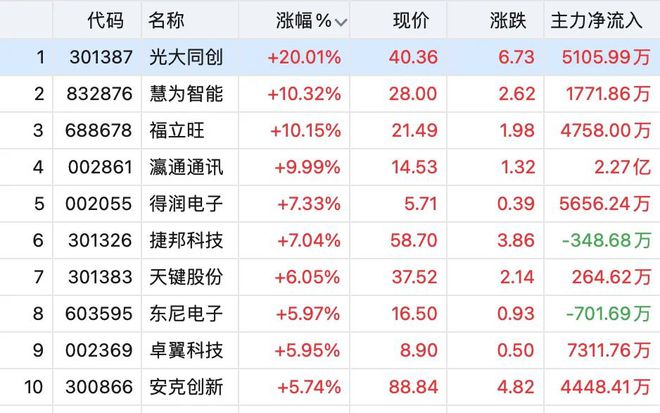 此外,消费电子板块亦有不俗表现,光大同创、瀛通通讯涨停。