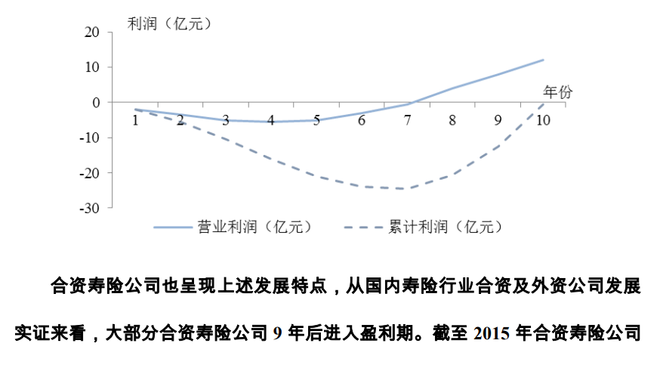 这种承诺的基点,应该来自于"七亏八盈"的通常规律。根据原保监会2008年的研究,寿险公司的利润曲线呈凹形,开业前期存在亏损,5-6年为亏损最严重时期,7-8年后进入盈利期。