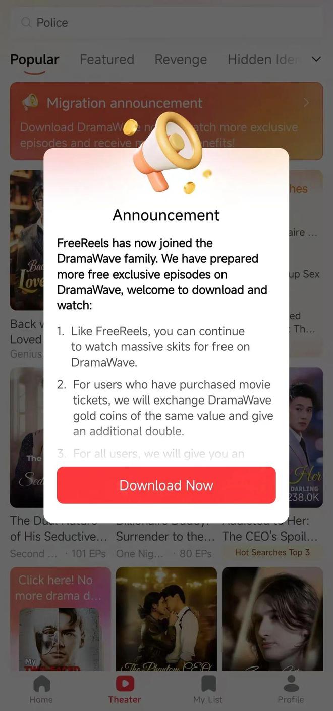 昆仑万维于 2024 年下半年正式入局海外短剧赛道,先后推出付费短剧应用 DramaWave 和免费短剧应用 FreeReels。不过双线运营模式未能持续太久,2025 年 2 月,FreeReels 开始引导用户至DramaWave 平台。