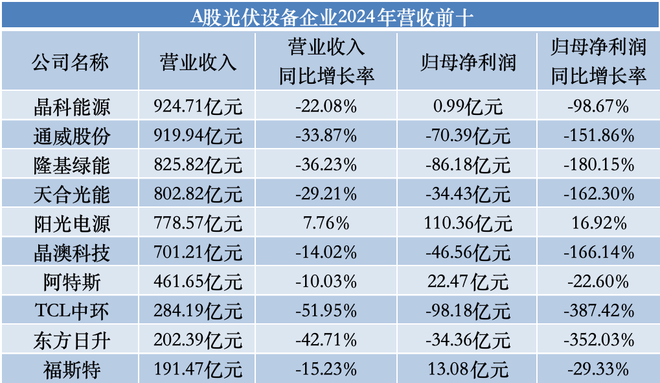 伴随A股2024年年报收官,光伏行业仍在亏损中加速洗牌。