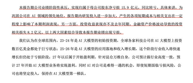 游戏曾是昆仑万维的主业,但如今的情况已经大有不同。作为一家热衷于“追风口”的公司,昆仑万维近年来业务布局覆盖AGI与AIGC、信息分发、元宇宙、社交、娱乐及游戏等多个领域,最新的战略是“All in AI”。然而,正是这一战略让昆仑万维由盈转亏,公司在财报中解释称,一方面,为巩固AI领域领先优势,公司大幅增加了研发投入,全年研发费用攀升至15.4亿元,同比增长59.5%;另一方面,资本市场剧烈波动导致金融资产价格震荡,投资相关损失高达8.2亿元,进一步加剧了整体亏损态势。