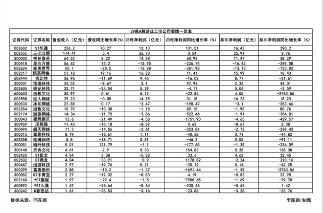 A股游戏公司业绩数据( 实习生李昭颖 制图)
