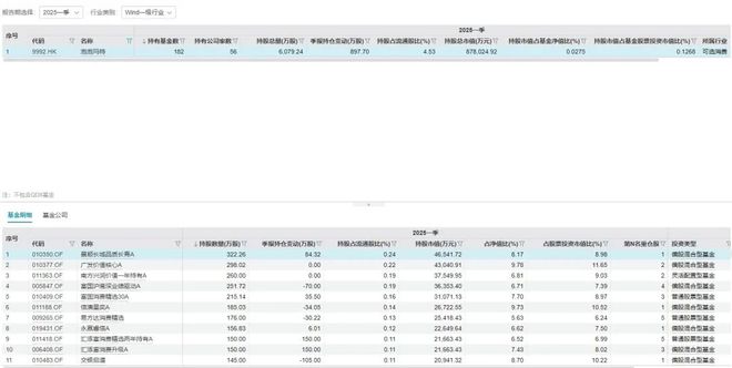 无论是持股基金数还是持股数值相比一年前均有大幅提升,但这也说明,在去年一季度泡泡玛特股价震荡调整时,一些基金经理对这种新消费场景还处于观望态度。