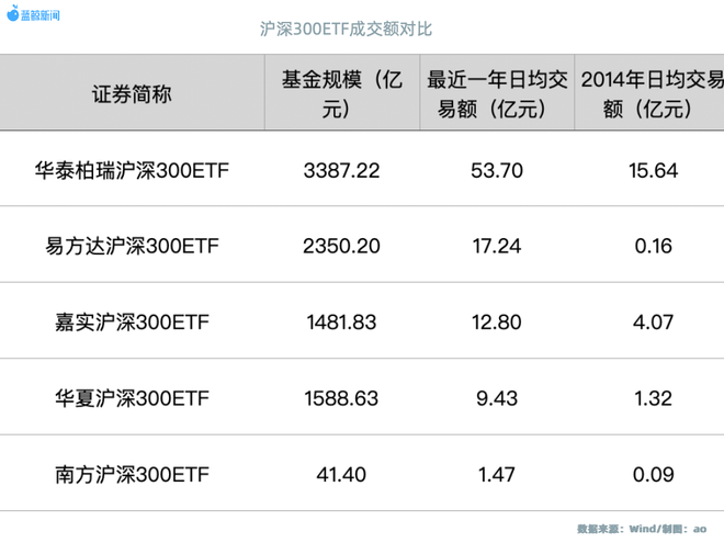 但华泰柏瑞沪深300ETF的流动性向来同类中是最好的,哪怕规模曾一时落后。