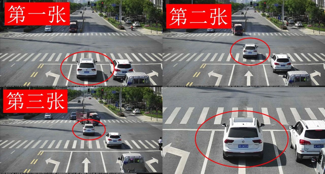 3、能反映机动车与(2)图片中机动车向前位移的图片,并能清晰辨别车辆类型、交通信号灯红灯、停止线。