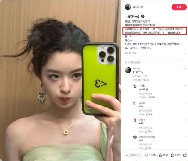 这一系列信息,源于黄杨钿甜5月11日在社交平台上分享的成人礼照片。照片中,黄杨钿甜佩戴的耳环被指认是奢侈品牌GRAFF经典系列,官方售价约230万元。