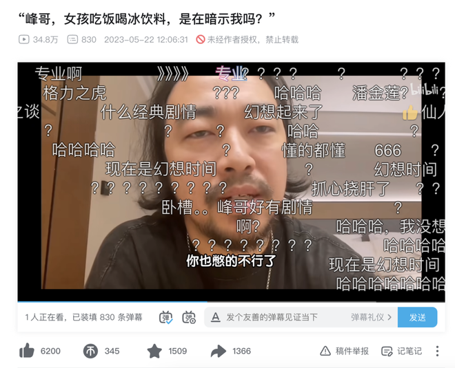 如果你有幸在峰哥的直播间里观摩几分钟,就会感受到一股浓郁的来自中国男性青年的压抑の味,可谓群贤毕至,少长咸集。