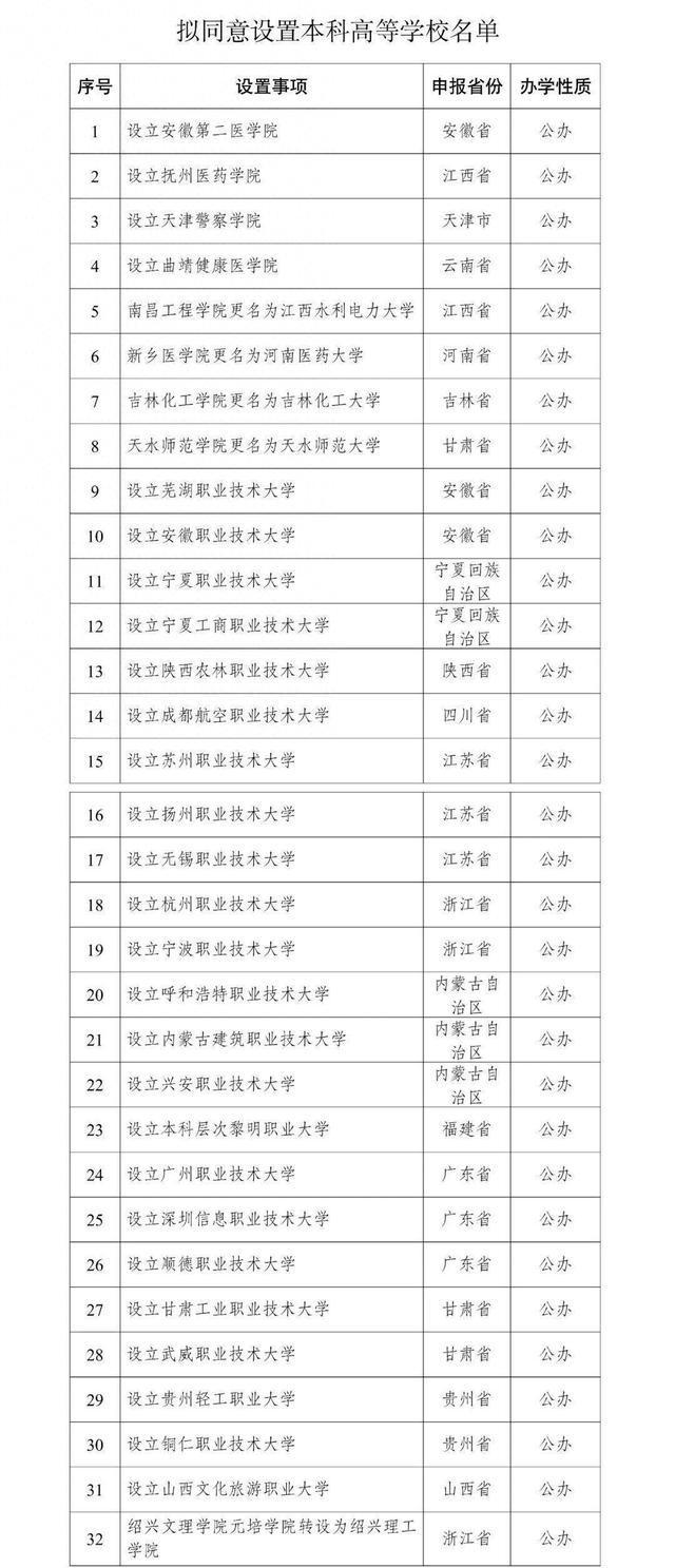 教育部拟同意设置32所“新大学” 公示名单详情→ 访客 2025-05-22 17:42:47 188 默认 摘要: 记者从教育部官网获悉, 教育部拟同意设置安徽第二医学院、天津警察学院、芜湖职业技术大学等32所学校,现予公示。公示时间为... 记者从教育部官网获悉, 教育部拟同意设置安徽第二医学院、天津警察学院、芜湖职业技术大学等32所学校,现予公示。公示时间为2025年5月22日至5月28日。期间,如对设置学校有不同意见,请署名向教育部反映。来源:央视新闻 标签: 教育部 芜湖 海报 阅读 QQ 分享 微博分享 微信分享 分享 上一篇抖音上线阻止相同侵权内容传播功能:优先覆盖肖像隐私侵权场景 下一篇云端赋能 智税惠民 潢川县税务局助力营商环境优化升级 抖音上线阻止相同侵权内容传播功能:优先覆盖肖像隐私侵权场景上一篇 云端赋能 智税惠民 潢川县税务局助力营商环境优化升级下一篇 相关推荐 教育部芜湖 防晒口罩越戴越容易变黑?假的 2025-07-17 问题产品封存、下架、召回!上海警方:对维态美公司立案侦查 2025-07-17 俄乌称击落对方多架来袭无人机 2025-07-17 加拿大东部多处野火持续肆虐 居民被迫撤离 2025-07-17 2025上半年哪些影视剧最火? 2025-07-17 印度一孕妇被医院告知胎儿已死亡,数小时后,在诊所生下男婴 2025-07-17 范县:暑期免费观影点燃少年爱国情 2025-07-17 体检十年查不出癌症,“健康守门人”的失职谁来担责?丨中听 2025-07-17