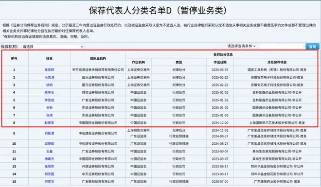 近日,中证协更新保荐代表人分类名单。其中,D类(暂停业务类)名单更新至15人。