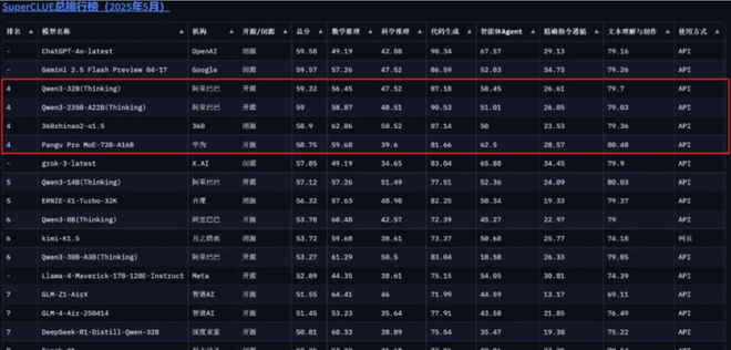 在模型能力方面,盘古 Pro MoE 在最新一期业界权威大模型榜单 SuperCLUE 上交出了超能打的成绩,实现了综合能力的领先。