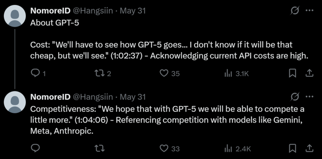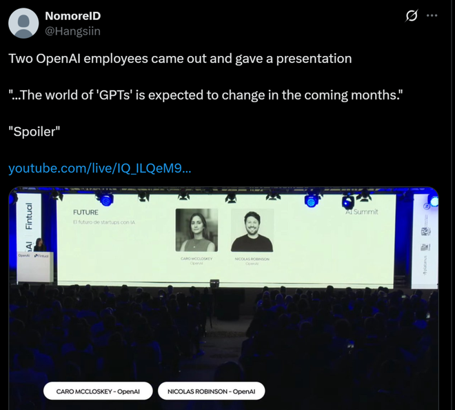 与之相应,近期有网友发博文介绍,在墨西哥举办的AI Summit峰会上,两名OpenAI公司代表透露,GPT-5即将面世。