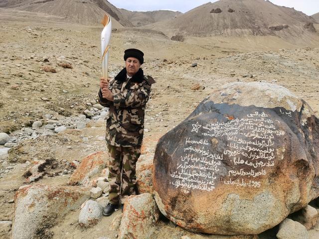 1949年12月,中国人民解放军将五星红旗插到了帕米尔高原上。那时候,我爷爷感到非常有荣誉感、幸福感和安全感,红太阳终于照亮了帕米尔高原,我爷爷召集整个家族立下一个家训,两句话14个字:永远跟着共产党,爱国守边一辈子。从那时开始,我爷爷为解放军引路当向导,成为了我们家庭第一代守边人。1951年我父亲加入了中国人民解放军,成为我们塔吉克民族第一个穿上军装的塔吉克战士,也是第一个走出高原进入中央民族学院学习的塔吉克青年。我给大家讲个故事,有一个电影叫《冰山上的来客》,大家都知道,这里面有一首歌叫《花儿为什么这样红》,我想大家都会唱。《冰山上的来客》有一个主人翁叫阿米尔,阿米尔的原型就是我的父亲卡德尔。我父亲退役后选择在海拔4700米的高原高寒地区守边,这个地方与三个国家接壤,他在那里选了一块大石头,把军徽和爷爷的家训刻在了上面,这也是激励我们后代永远跟党爱国守边,把自己的祖国守好。