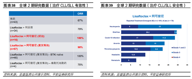 凭借安全性和给药优势,APG-2575一方面展现了满足Bcl-2抑制剂主战场CLL/SLL领域更多患者需求。其联合阿可替尼治疗CLL/SLL的潜力显著。公司此前公布的2期研究结果显示,APG-2575与阿卡替尼联用治疗初治CLL/SLL患者的ORR达100%,在R/R CLL/SLL中的ORR仍达98%。不管在治疗CLL/SLL还是R/R CLL/SLL中,APG-2575联合疗法均可能最佳选择