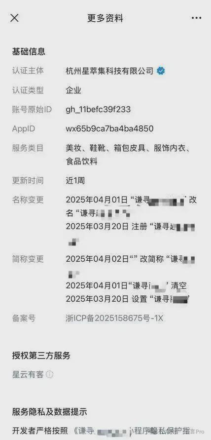 此外,小程序“谦寻XX”的主体为杭州星萃集科技有限公司。