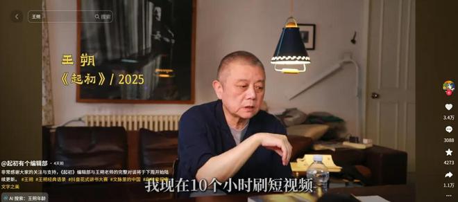 作家王朔自爆"一天刷10小时短视频" 图源:抖音