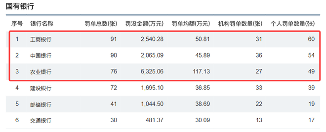 根据企业预警通发布的2025年第一季度银行监管处罚报告,农业银行、工商银行、中国银行、民生银行、光大银行被罚没金额均超过2000万元。