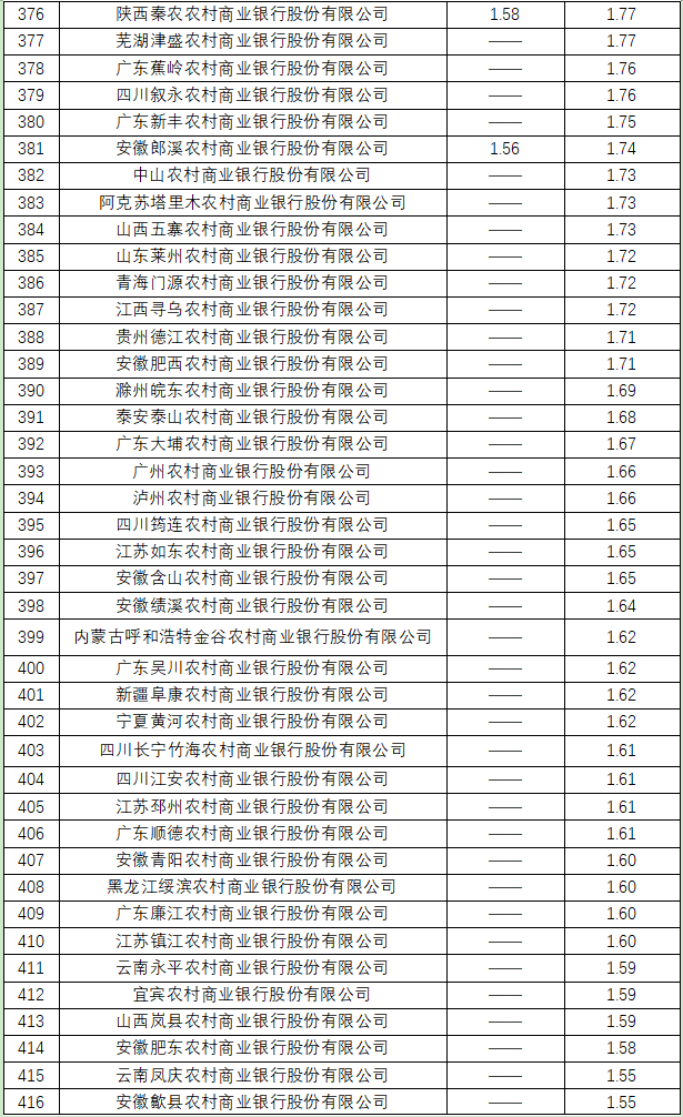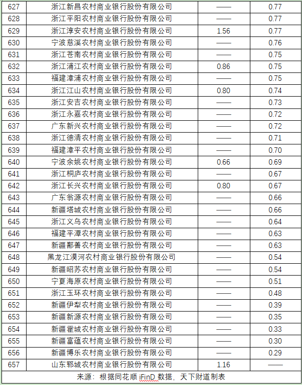 从公布的数据看,农商行整体不良率表现较差,资产质量存在更多压力。