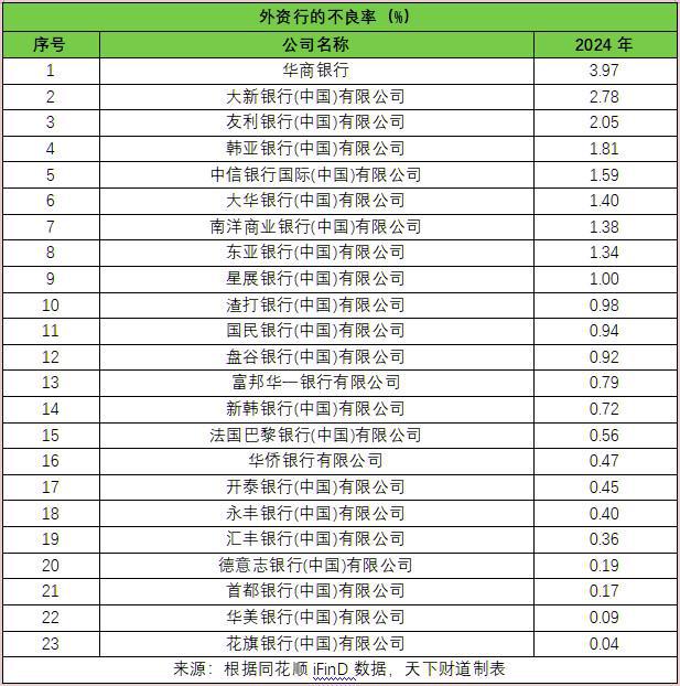 目前尚难寻外资银行2025年一季度不良率的数据,根据去年末的表现,其整体不良率水平偏低。