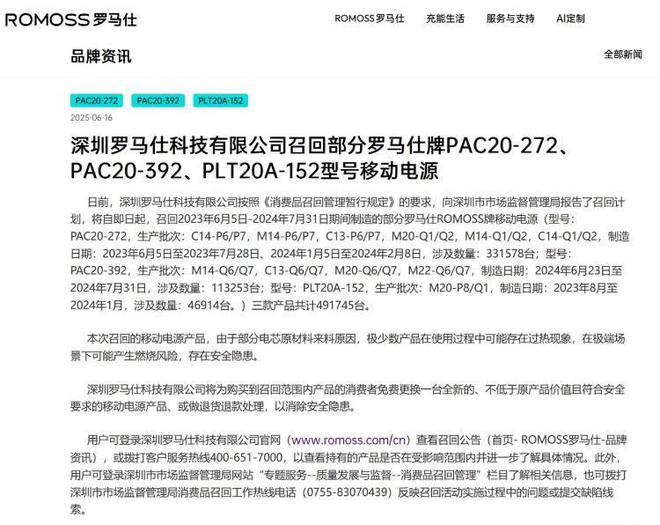 近日,"北京多所高校禁用罗马仕充电宝"的消息引发了公众对充电宝产品安全的高度关注。就在6月16日,罗马仕官方发布公告称,将召回超49万台存在安全隐患的移动电源产品。