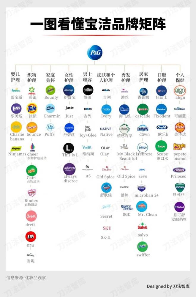 进入中国市场以后,它的市场份额最高占到 47%。像大家耳熟能详的 SK-II、OLAY、海飞丝、潘婷、飘柔、舒肤佳、佳洁士、护舒宝、吉列、博朗、汰渍等等,都是它的产品。