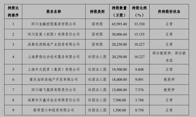 从国宝人寿的股权结构来看,第一大股东为四川省金融控股集团有限公司,持股33.33%;四川发展(控股)有限责任公司持股15.155%,位列第二大股东;其后,成都先进制造产业投资有限公司与上海梦澄运合技术服务有限公司(以下简称"梦澄运合")分别持股10.227%,其余5家股东持股比例则均不足10%。