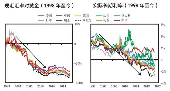 进入2000年,美元继续相对黄金贬值,一是因为持续的大规模货币和信贷创造,二是高通胀、低实际利率的环境。