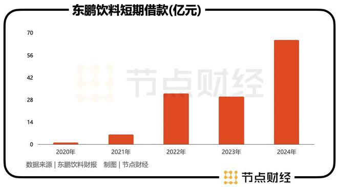 2024年,东鹏饮料的短期借款从2023年的29.96亿元膨胀至65.51亿元,增幅高达118.69%,有息负债率同步飙升,从52.89%拔高至86.46%。