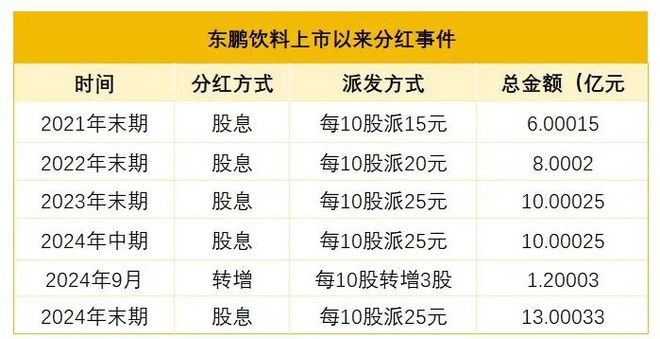 业绩节节高升,为东鹏饮料积蓄了充裕的"粮草",也奠定了公司豪气派息的底气。