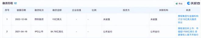 天眼查APP融资信息显示,当初携程港交所上市,市值超过1700亿港元。
