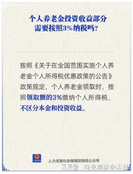 个人养老金投资收益部分需要按照3%纳税吗?人社部24日通过官方微信公众号作出解答。