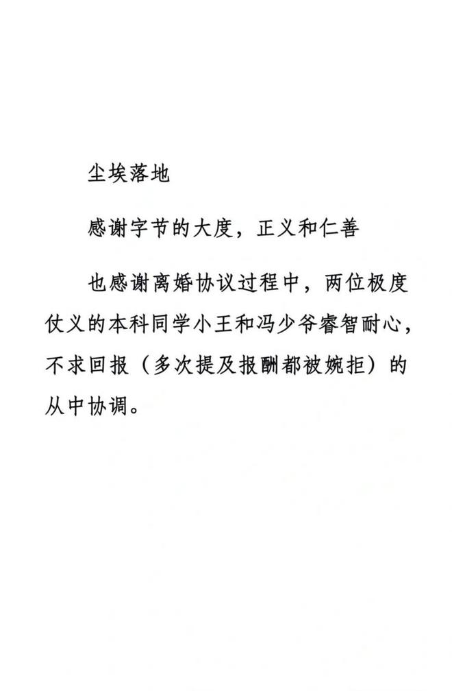 今日,乔某前妻发声感谢了前夫前公司的大度、正义和仁善。