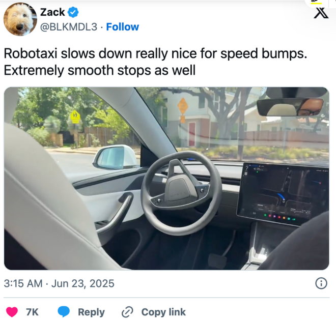 出租车驾驶座位上确实空空如也,副驾驶座位上则有一位特斯拉工作人员。如此一来,员工既可以给乘客提供帮助,且随时可以紧急中断并停下车辆,又没有实际破坏“无人驾驶”的画面。