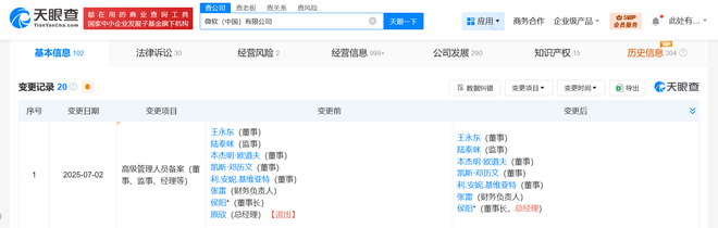 天眼查App显示,近日,微软(中国)有限公司发生工商变更,原欣卸任总经理,由董事长侯阳接任。