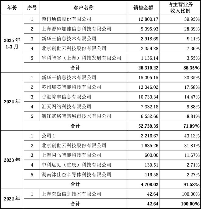 但沐曦的面临的困境可能并不比摩尔线程小,因为在这份统计数据中,能够看到2025年的第一大客户是超讯通信股份有限公司,与上面的极致电子一样,它也是沐曦的核心经销商,其采购金额达到沐曦在今年一季度主营业务营收的39.95%。