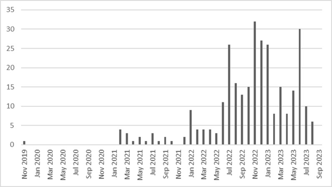 “...在B站上, 相关视频发布于2019年11月...与外国伪史相关的视频数量在2021年开始上升,并在2022年达到流行高峰。” “反对外国伪史的视频整体上拥有更多的观众,但支持外国伪史的视频同样也可能吸引到相当一部分粉丝。过去几年中,伪史相关视频的总体数量一直在增长,尤其是在2022年。这一增长可能与当年来自“西方”的指责与污名化感受有关...外部的指责则可能让人们感到不被尊重 。”