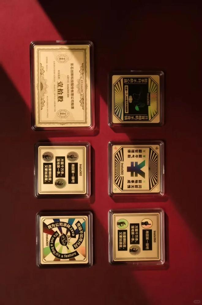 据爆料,今天是影石10周年庆,公司给全体员工发了一份“黄金盲盒”作为周年庆礼物。黄金盲盒普通款包含5种版式的黄金贴,稀缺款是360份限量的黄金股票证书。