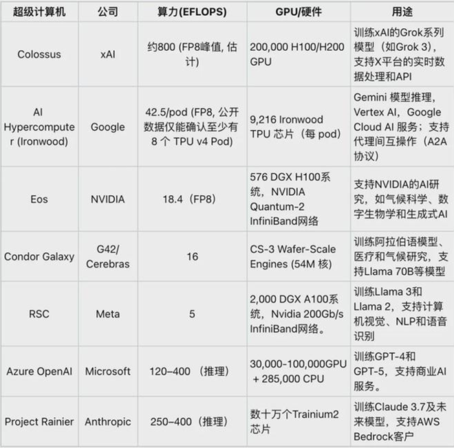 Colossus超算中心位于美国田纳西州孟菲斯市,目前已部署35万块H100,总浮点运算能力达到100 EFLOPS,预计下半年将扩展到超过50万张卡。