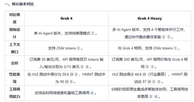 Grok 4拥有两个版本:Grok 4(月费30美金)、Grok 4 Heavy(月费300美金,是的你没看错,300美金!)。其中Grok 4是单Agent版本,而Heavy是多Agent协作版本,能够同时启动多个Agent并行工作,并最后整合结果。