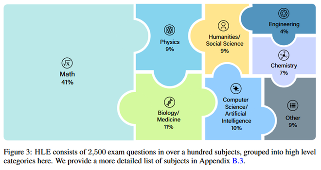 HLE包含2500个极具挑战性的问题,覆盖数学、人文学科、自然科学等超过100个学科,设计为无法通过简单的互联网检索快速回答的问题。