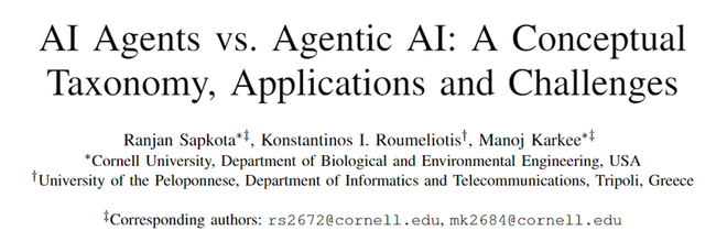今年5月的一篇论文详细阐述了从AI Agent到Agentic AI的发展趋势,强调从单一任务的执行迈向多代理协作的新范式。