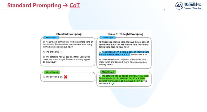 当时,CoT能力属于Prompt工程,是独立于大模型能力之外的一种提示词技巧。