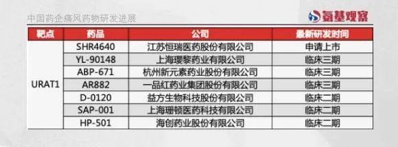 整体来看,与海外药企相比,国内药企在痛风领域的布局更为活跃。