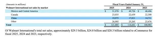 但在沃尔玛卖场数量持续收缩的情况下,凭借着山姆,沃尔玛中国业绩却能不断高歌。2025财年,沃尔玛中国市场净销售额为199.75亿美元(约合人民币1433亿元),同比增长17.42%,上年增速为15.63%。