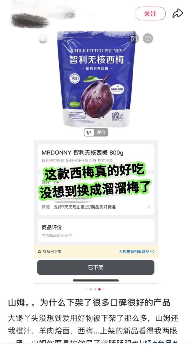 更让老会员失望的是,曾经支撑山姆“高品质”的口碑产品正逐渐消失,取而代之的是“平替”。比如曾因配料表干净而走红的老版MRDONNY智利无核西梅,如今已被新款溜溜梅智利无核西梅干取代,不少消费者反馈“口感和品质远不如老款”。而同为会员制仓储超市的开市客(Costco),同类西梅仍坚持选用美国进口的科克兰品牌,对比之下,山姆的“优选”标签更显苍白。