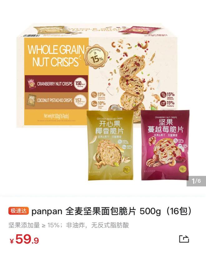 在山姆小程序上,徐福记、喜之郎、盼盼、卫龙、伟龙等传统国货品牌早已悄然上架。它们被包装成 “特供款”:徐福记推出低GI燕麦藜麦蛋糕、芥末味板烧虾饼,喜之郎主打益生元岩烧海苔,卫龙上架高纤牛肝菌魔芋,盼盼则把面包脆片的外包装印满英文,商品名改用拼音 “panpan”,不细看很难认出是熟悉的国货品牌。